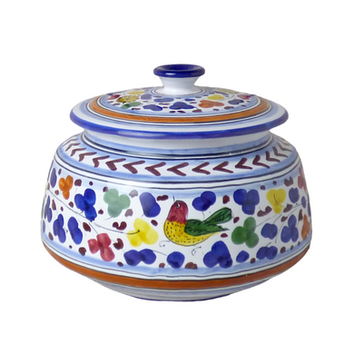 Butter Dish - Tuscan landscape with poppies and navy blue trim