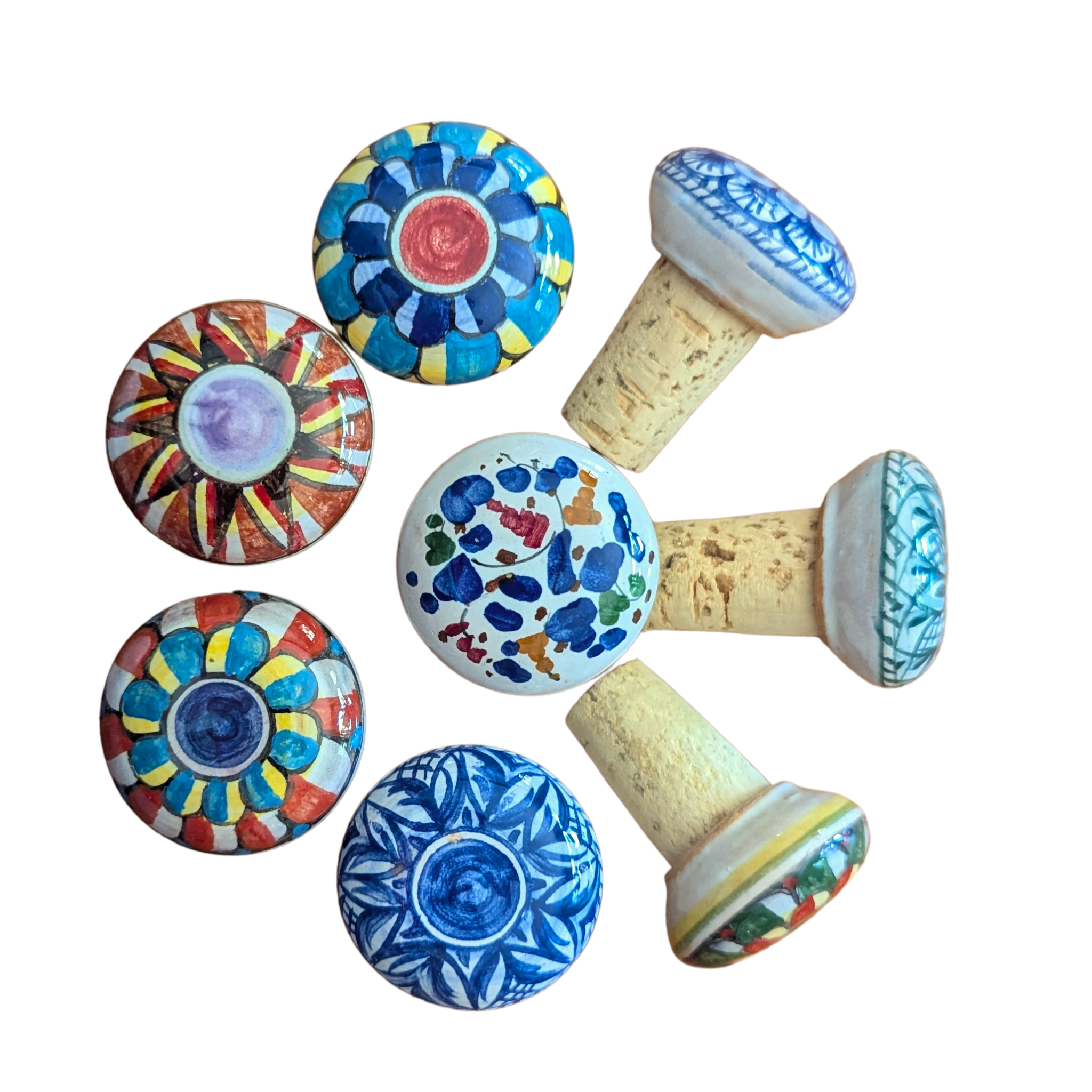 Save the leftover wine in a bottle with a colourful hand painted ceramic and cork bottle stopper.