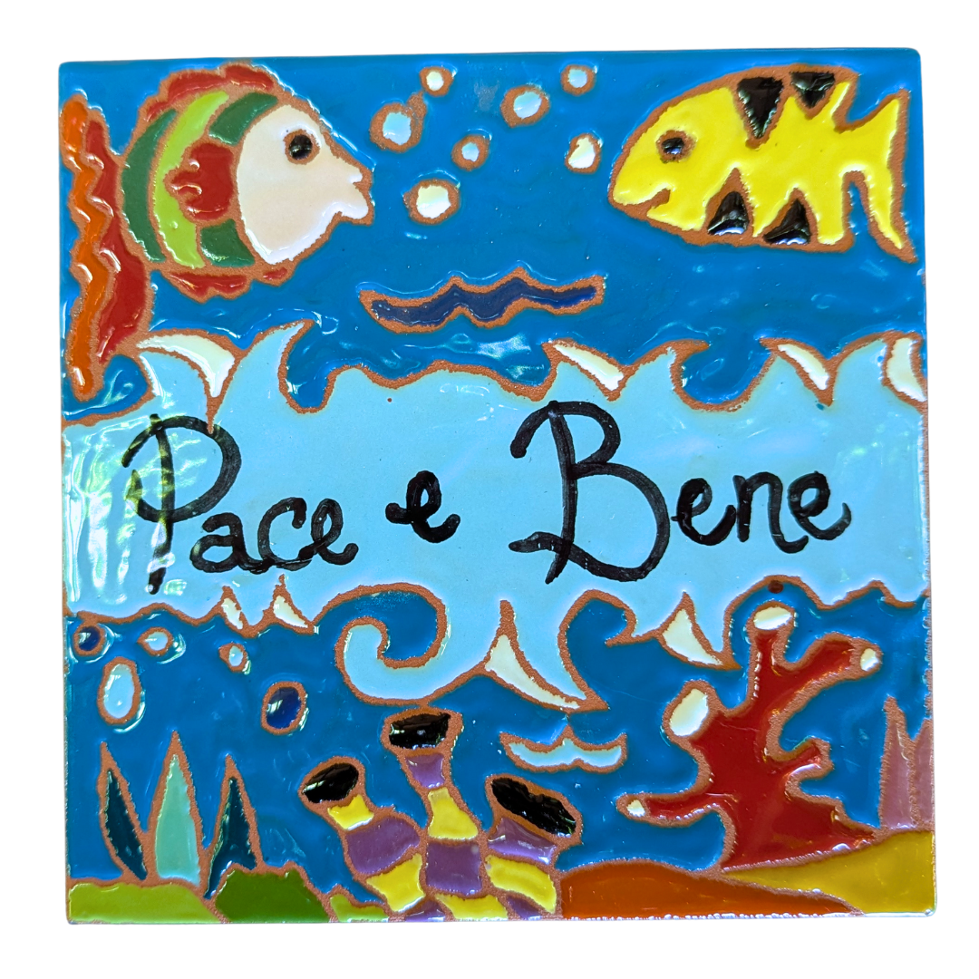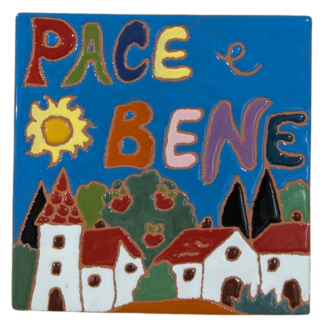 Each 15cmx15cm tile, hand painted using the 'relief ceramic' technique by skilled artists at Sial Ceramica, is a blessing, a hope, and a reminder of the sacredness of each person we encounter.