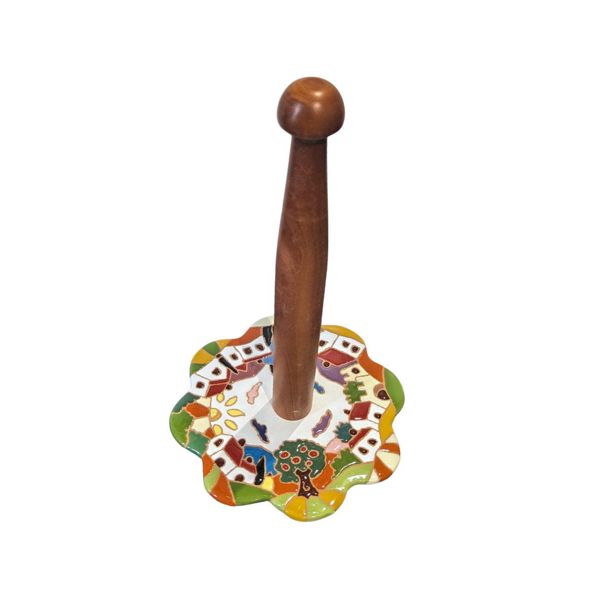 Standing 18cm tall with a wooden roll holder, the ceramic base is hand drawn and painted, so each one is truly one of a kind.