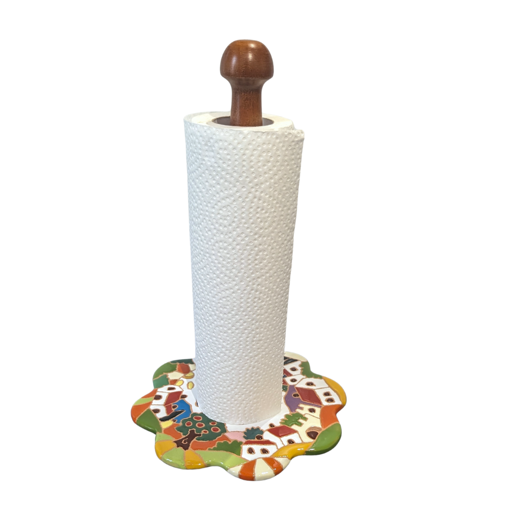 Keep your paper towel handy while adding some Italian charm and colour to your kitchen with this colourful jar, hand painted with a happy Tuscan landscape.