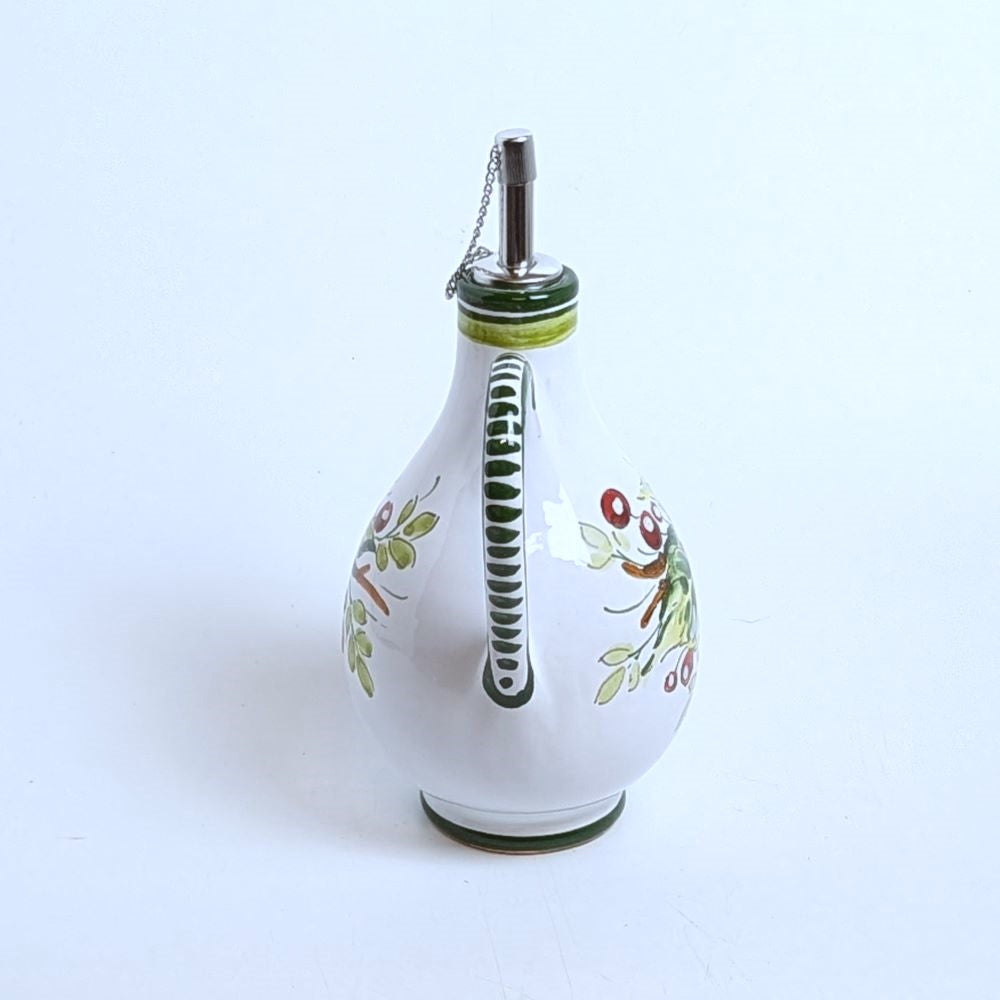 These charming ceramic bottles showcase bright lemons and striking red berries set against fresh green leaves. Ideal for presenting your favourite olive oil and balsamic vinegar, each bottle includes a handy handle and pourer with a cap to keep contents fresh.