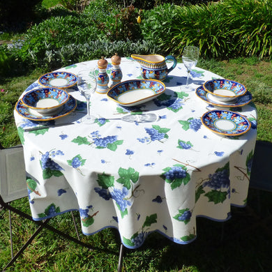 Round cotton tablecloth - 180cm diameter - blue grapes